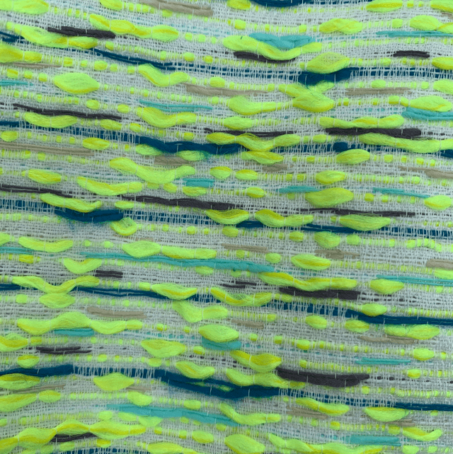 This is a very special fabric- textured boucle in shades of white, teal and citrus